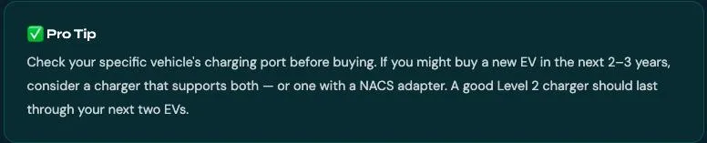 Cable length: Choose 18–25 ft for flexibility. Measure the distance from your panel to your parking spot first.